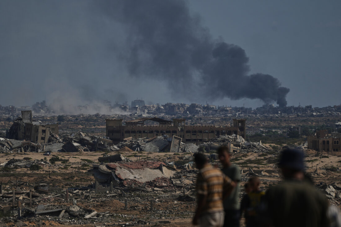 Smoke rises to the sky following an Israeli military strike in Gaza City, as seen from the central Gaza Strip, Thursday. (AP Photo/Abdel Kareem Hana)