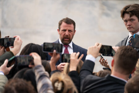 - Sen. Markwayne Mullin, R-Okla., speaks to the press outside of the Capitol, Thursday, March 5, 2026, in Washington. (AP Photo/Allison Robbert)