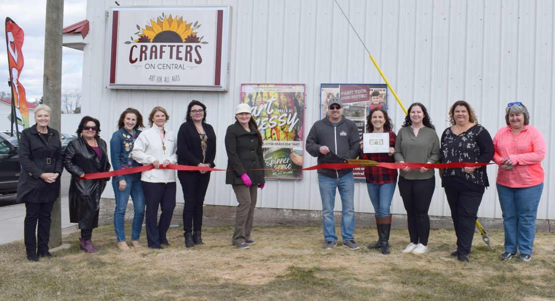 Terri Castelaz/Daily News photo THE DICKINSON AREA Chamber of Commerce had a ribbon-cutting ceremony for Crafters on Central in Florence, Wis. From left are Suzanne Larson, chamber executive director; chamber ambassadors Tamara Juul, Mindy Wittock, Anne LaBelle and Kristin Mattson; and Laura Lobner, Doug and Stacey Lantagne, Kallie Weecks, Carrie Toretto-Partello and Ann Walker of Crafters on Central.