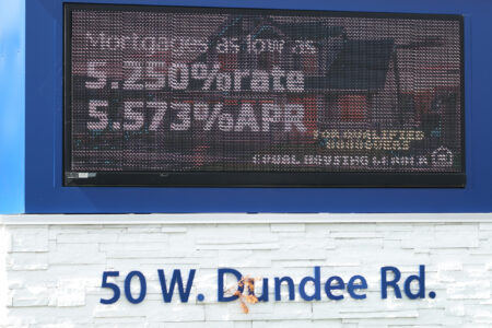 Mortgage rates are displayed Sept. 23 at a credit union in Wheeling, Ill. (AP Photo/Nam Y. Huh)