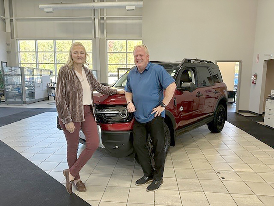 - The Hole-in-One Sink the Shot contest was sponsored by Town & Country Ford. Shown are Suzanne Larson, Dickinson Area Chamber of Commerce CEO/executive director, and Steve Juul of Town & Country Ford. (Contributed photo)