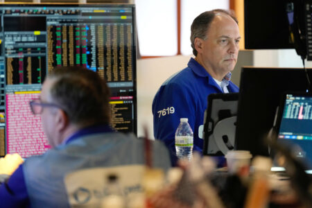 James Conti works the floor Thursday at the New York Stock Exchange in New York. (AP Photo/Seth Wenig)