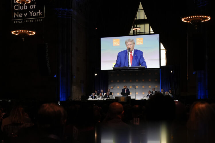 NEW YORK (AP) — Former President Donald Trump suggested to business leaders Thursday that his plans to increase tariffs on foreign imports would solve seemingly unrelated challenges such as the rising cost of child care in the U.S.