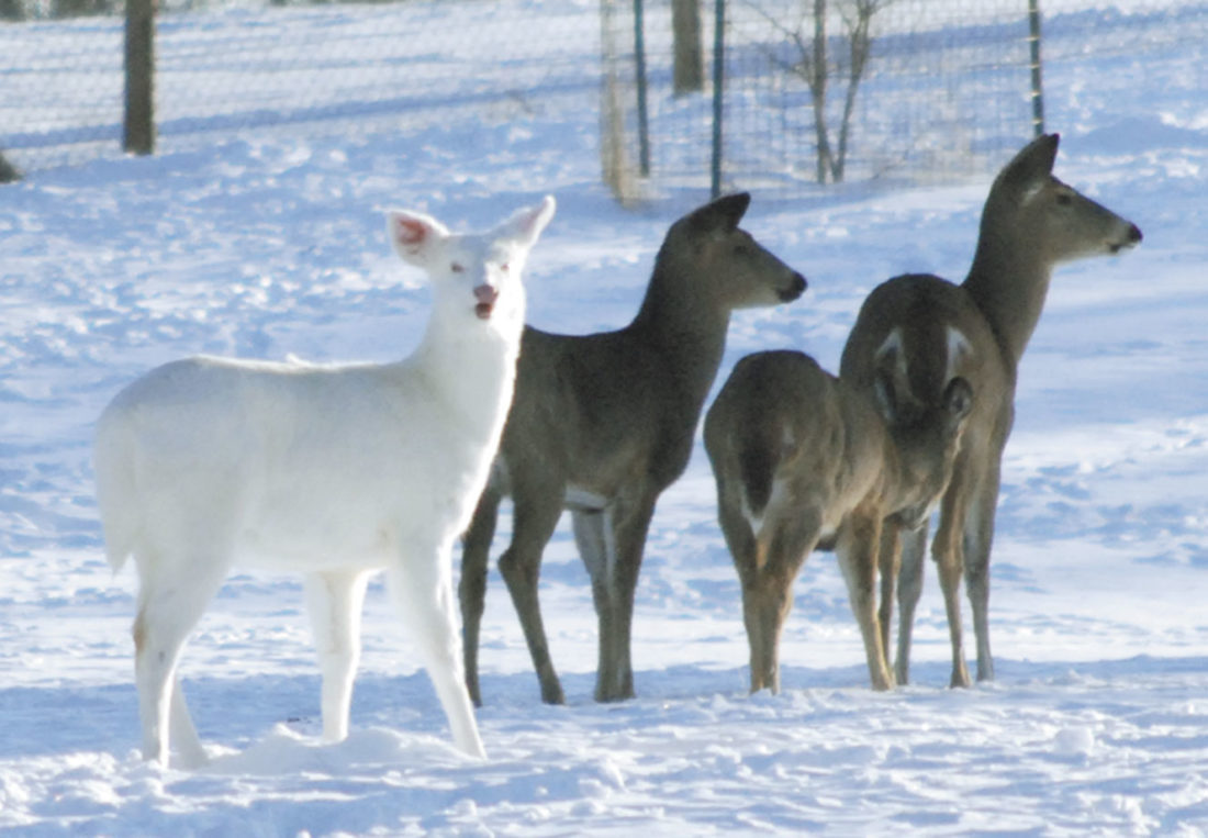 An albino buck that had been a popular attraction at Iron Mountain’s City Park was found dead Wednesday afternoon in the deer pen. A biologist told city officials the 9-year-old white deer dubbed “Blizzard” appears to have had cancer, City Manager Jordan Stanchina said, adding his understanding was that’s not uncommon for albino animals because of their sensitivity to sun. Blizzard and his normal-colored twin, shown in the lower photo, were born at City Park in May 2008. The uniqueness of having the all-white, pink-eyed deer in the park — only one in about 30,000 fawns are albino, experts said — made him popular among park visitors and frequently photographed. Scott Thomas, public works superintendent, said the park still has 18 deer.
