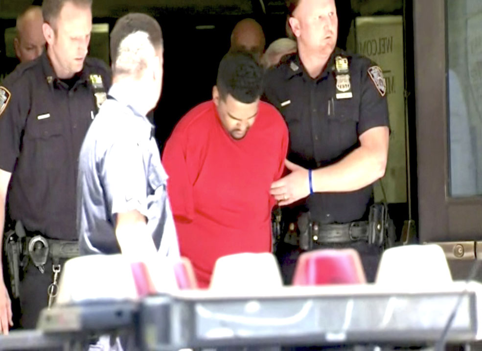 (WABC Eyewitness News via AP) IN THIS IMAGE taken from video provided by WABC Eyewitness News, New York City Police officers escort Richard Rojas from the Midtown South Precinct station house in New York. Rojas steered his car onto a sidewalk running through the heart of Times Square on Thursday and mowed down pedestrians for three blocks, killing a Michigan teenager and injuring 22 others, before he was tackled by bystanders, authorities said.