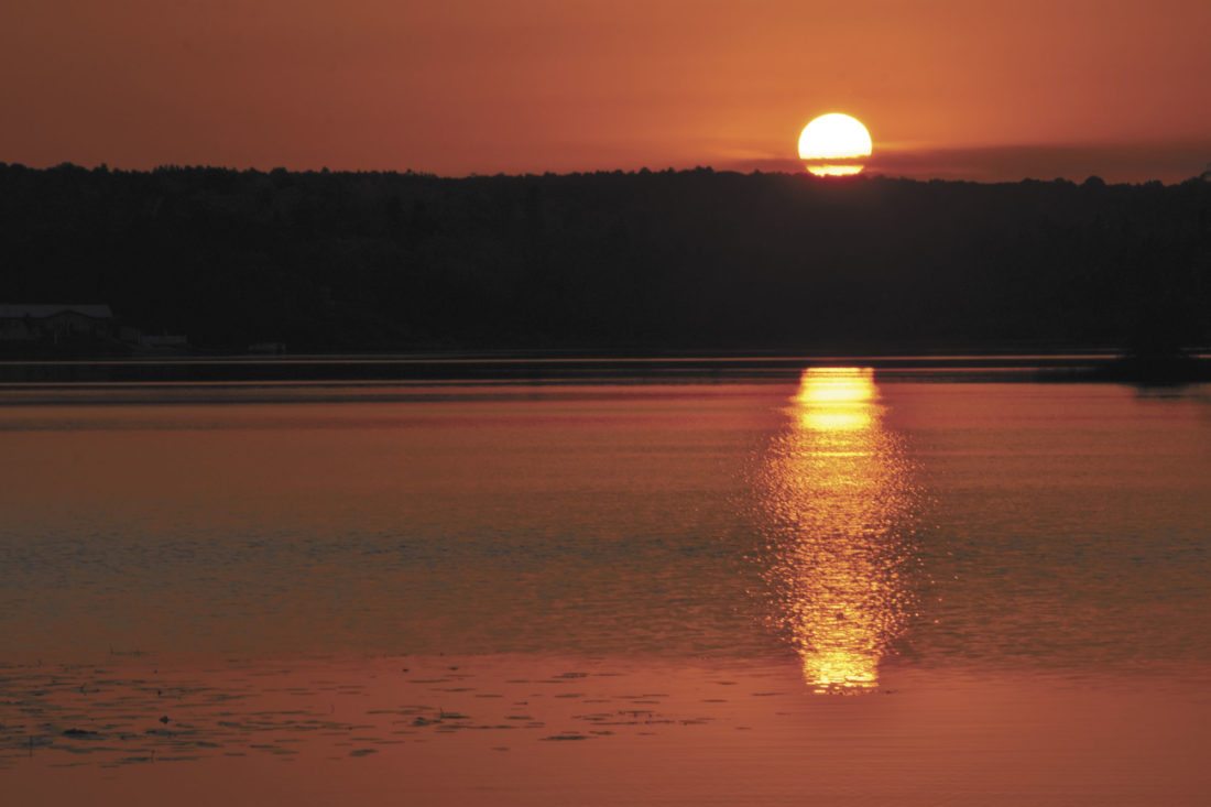 THE SUN SETS over Six Mile Lake in northern Dickinson County. Today’s sunset will be the last of 2017 to come after 7 p.m. Central time in the Iron Mountain area; by month’s end, the sun will drop below the horizon only a few minutes past 6:30 p.m. (Betsy Bloom/Daily News photo)
