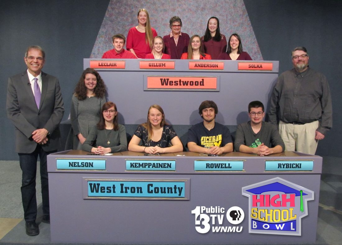 West Iron County played Westwood in the third round of High School Bowl and were defeated by a score of 180-130. Forty schools from the Upper Peninsula and northern Wisconsin field teams for Public TV 13’s High School Bowl tournament, now celebrating 40 years on the air. Running from November through the championship game in April, the High School Bowl series airs on Public TV 13 Saturdays at 8 p.m. Eastern time and Mondays at noon Eastern time. Find more information on the tournament at wnmutv.nmu.edu.