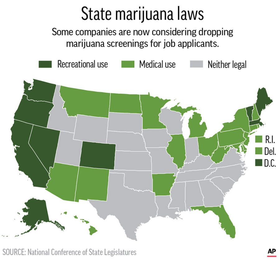 In most states that have legalized marijuana, like Colorado, businesses can still, if they wish, fire workers who test positive. On the other hand, Maine, which also legalized the drug, became the first state to bar companies from firing or refusing to hire someone for using marijuana outside work.