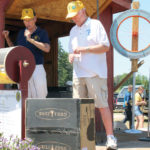 The Vulcan-Norway-Loretto Lions Club had its annual community picnic Sunday in Norway’s Marion Park. Lions Club members Bill Asselin and Jim DeRoeck pull winning tickets in the numerous drawings during the event. (Theresa Proudfit/Daily News photo)