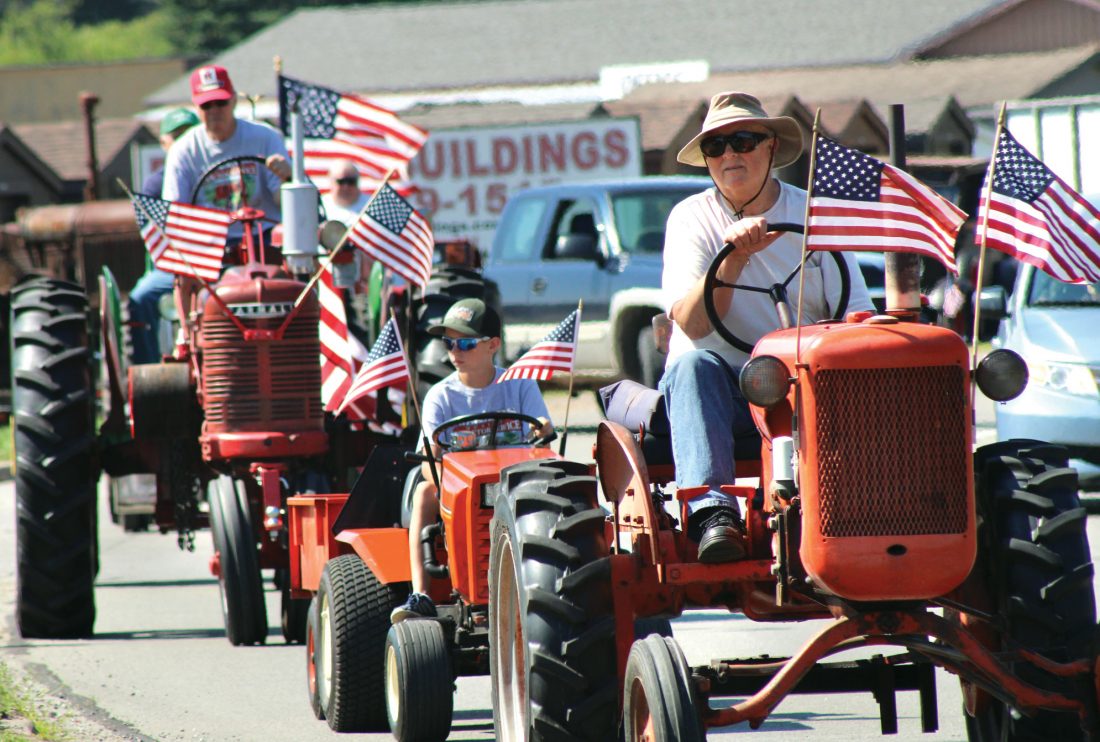 From left, Jerry Parrot of Iron Mountain, Caleb Erickson of Kingsford and Ken Kaphingst of Pembine, Wis., participate in the tractor parade from Aurora, Wis., to the Oscar G. Johnson VA Medical Center in Iron Mountain on Wednesday morning. The Northwoods Antique Tractor Club has led an annual tractor procession for the past eight years.