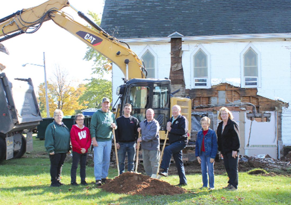 Members of the First Presbyterian Church of Florence and MBM Construction broke ground for the new addition of the church. From left are Jan Roberts, Pat Christian, Jim Churchill, Steve Phillips, MBM construction, Dennis Christian, Ken Johnson, Karen Wertanen and Debra DeMuri. Originally completed on Nov. 16, 1880, the new addition will be two floors and will include a pastor’s office, a conference room, a secretary’s office, handicap bathrooms, handicap access to the sanctuary and basement fellowship hall, storage area and multipurpose room. The entrance to the building will change from Norway Avenue to the new addition on Lake Street. Following construction of the addition, renovation will occur in the fellowship and kitchen areas. The construction and renovations are able to be done through the generous bequest from the Estate of Melba Novak. Melba was a life-long member of the church, passing away at the age of 95. Memorial monies will also help with the renovations to the basement fellowship hall.