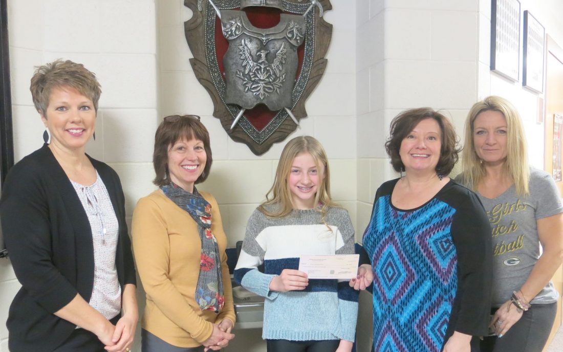 The Dickinson Area Community Foundation, along with affiliate Norway Area Community Foundation, recently awarded a $250 mini-grant to the Norway-Vulcan Middle School. The funds will be used to set up a comfortable place to read and relax in the middle school library. This project is being spearheaded by two sixth grade students, Anna deBidart and Joey Bourg. From left are Kristi Cazzola, superintendent secretary; Marybeth Thoreson, library aide; Anna DeBidart, student; Tamara Juul, director of the Community Foundation; and Jacqueline Leiker, teacher. The community foundation’s mini grant program is available throughout the year and is funded by donations and fund raising events. The next event is the “Christmas in the Wizarding World” event, being held at Pine Grove Country Club on Friday, Jan. 31, and Saturday, Feb. 1, tickets are available on the website, www.dickinsonareacommunityfoundation.org under the events tab. If you would like additional information, contact Juul at 906-774-3131.