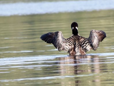 - A common loon flaps at Six Mile Lake in north Dickinson County. (Betsy Bloom/Daily News photo)