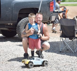BRANDON BRANAM OF Aurora, Wis., races remote-controlled vehicles with his son, Brandon Jr., age 4. The elder Branam says he’s been racing for about six years. (Betsy Bloom/Daily News photo)