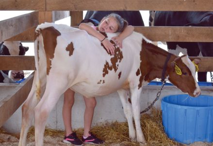 - From the 2020 Marinette County Fair in Wausaukee, Wis., 8-year-old Julie Vorkovec of Coleman, Wis., visits her calf in the barn. (Marguerite Lanthier/Daily News photo)