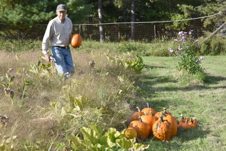 Fran McCarthy of Hamilton Lakes worked Thursday afternoon to get some of his garden crops in before the freeze predicted for overnight in the region. His neighbor, Darrell Younk, has allowed him for about a decade to have the garden on the Waucedah Township property. He estimated he has about 70 pumpkins, large and small, along with tomatoes, carrots and acorn squash. While he did pick some tomatoes, most will remain on the vine, he said, as this season gave him more than he could use or further store. Temperatures this morning and early Saturday were expected to dip to 30 degrees or lower throughout the region, according to the National Weather Service, likely ending the growing season for the year.