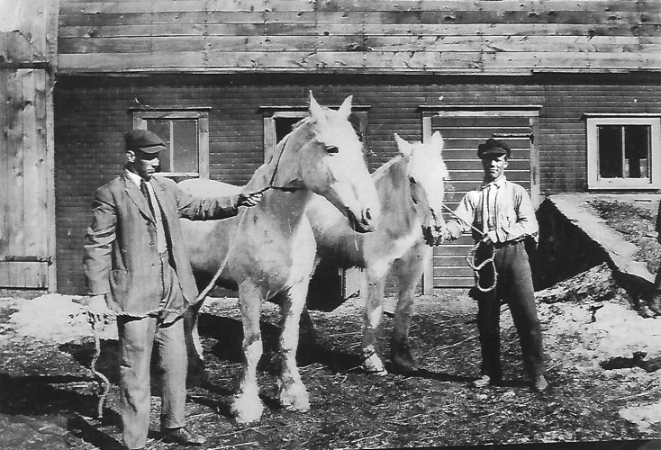 This 1914 photo shows Alfred and Anna Pearson’s sons, George and Arthur, with draft horses Colonel and Prince.