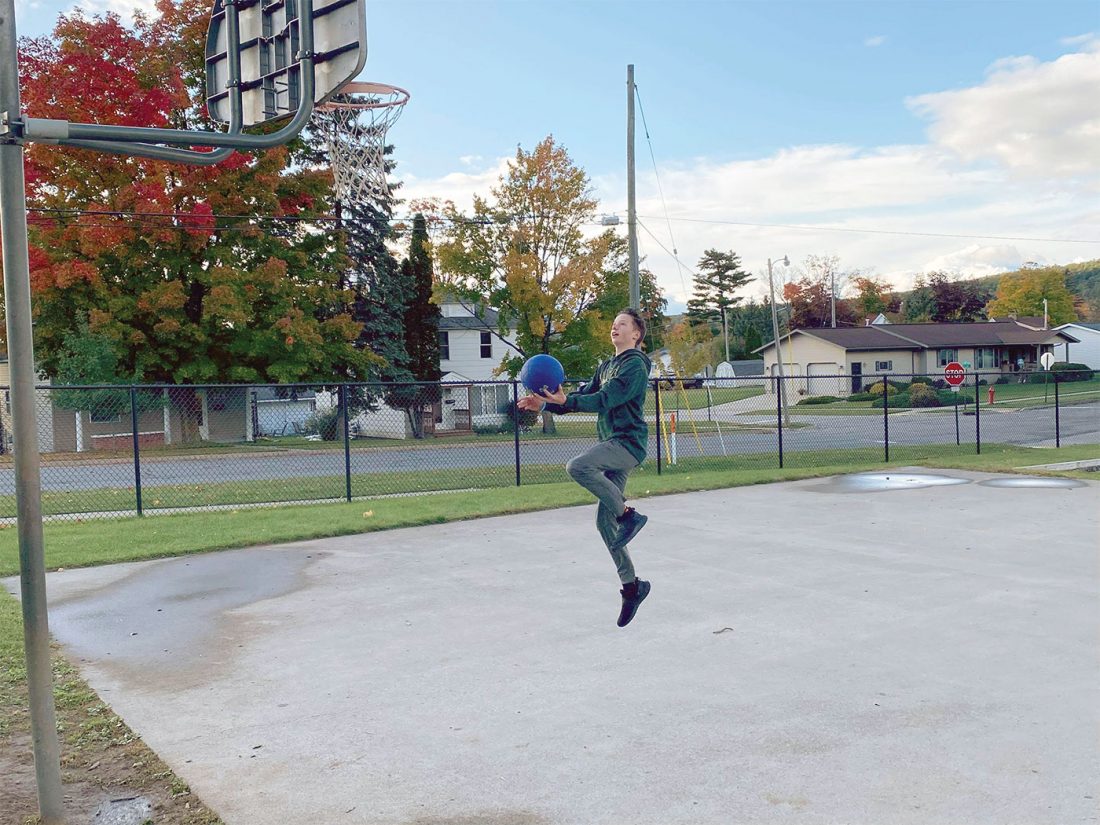 Adam Krackenberger, a home-schooled eighth-grader, goes for the layup on the outdoor basketball court on the Norway-Vulcan Area Schools playground in Norway. This week should offer plenty of play time outside, with lots of sun and highs in the 50s and 60s through the weekend.