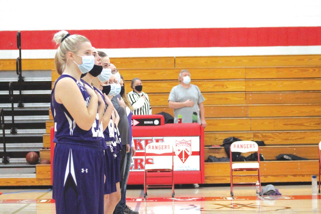 Niagara senior Haley Allred and the Lady Badgers team stand in unison for the Pledge of Allegiance on Tuesday night at Wausaukee High School. Niagara won 62-26 to open the prep basketball season for Wisconsin teams. For more coverage, please see sports