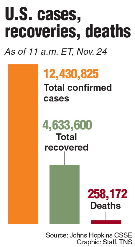 — Data from the Centers for Medicare and Medicaid Services show that Wisconsin nursing homes have seen a spike in COVID-19 related deaths. Homes reported 294 residents had died of the virus between Oct. 12 and Nov. 8. The number of deaths is 10 times higher than the 28 deaths reported in the previous month, the Milwaukee Journal Sentinel reported. In the latest four-week period, Wisconsin nursing homes reported 2,130 residents with new COVID-19 cases, up from 387 new cases in the preceding four-week period.