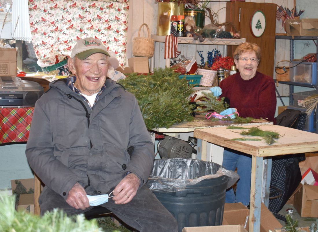 KEN AND ROSE WALLACE in the shop of their Trees by Wallace business on U.S. 141 in the Town of Amberg, Wis. The couple have operated the Christmas tree farm, which Ken’s father started, together for more than 60 years. (Betsy Bloom/Daily News photo)