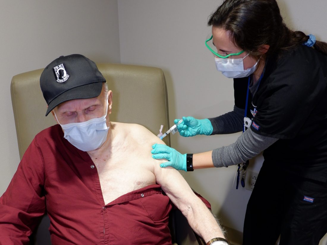 The first vaccines will be distributed to the most high-risk veterans and health care personnel. John Moddie, a 94-year-old former prisoner of war, WWII veteran, and resident in long-term care, was the first veteran to receive the vaccine at the Iron Mountain facility.