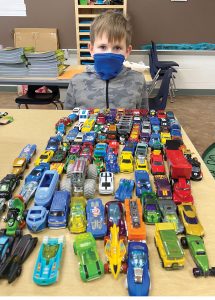 North Dickinson County School District first-grader students celebrated the 100th day of school on Wednesday by bringing in collections of 100 items, doing a Tootsie Pop challenge, coin flip and some 100-second exercises. Teacher Angie Mattson does these activities annually in class and never knows what interesting things will come in, Superintendent/Principal Angel Inglese said. Alan Brzoznowski assembled 100 Matchbox cars. (Submitted photo)