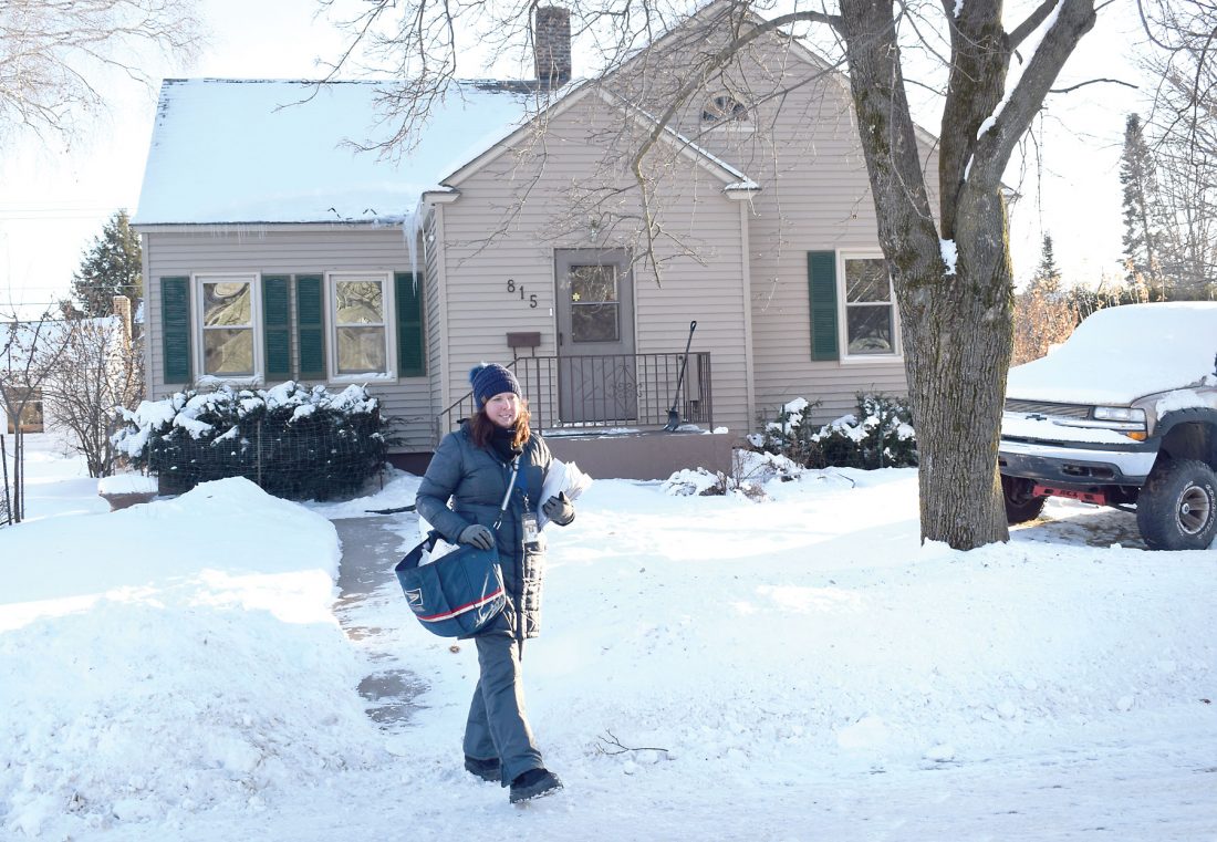U.S. Postal Service carrier Ashley Gregg delivers mail through frigid conditions on Hughitt Street in Iron Mountain. The recent stretch of bitter cold is expected to continue into early next week, according to the National Weather Service, with highs struggling to get into double digits and overnight lows dipping below zero. (Terri Castelaz/Daily News photo)