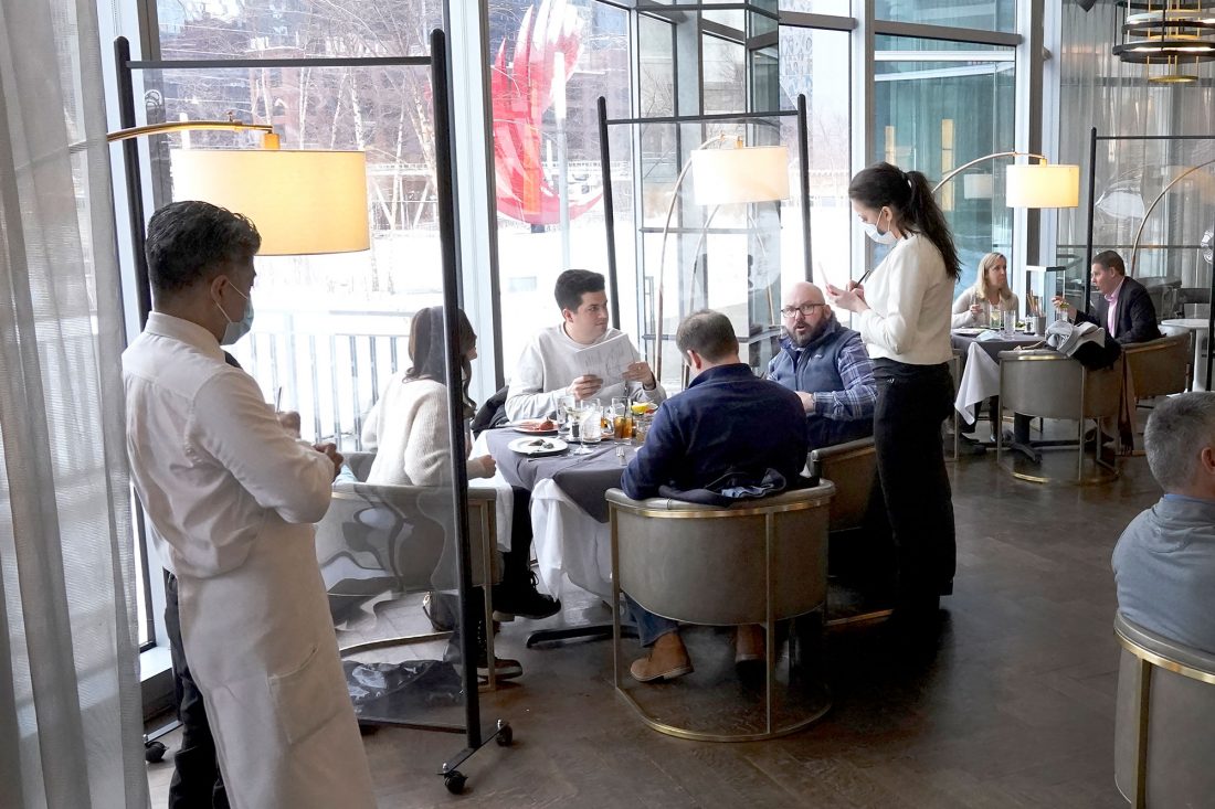 PATRONS ENJOY LUNCH indoors at Gibsons Italia restaurant in Chicago in January. A recent spike in coronavirus cases in some states has led one of the nation's top health experts to suggest governors could “close things down,” as they did during previous surges. But that doesn't appear likely to happen. (AP Photo/Charles Rex Arbogast, File)