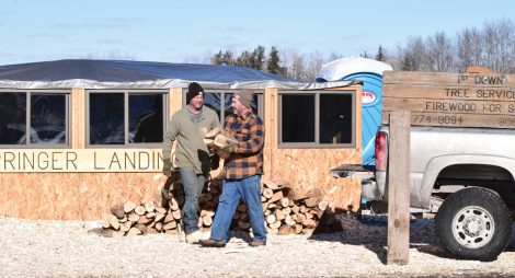 - A host of people were at the Pine Mountain venue Thursday getting set up for the crowds to come for the Marshfield Clinic-Dickinson Continental Cup ski jumping tournament that opens today. Doug Roberts and Richard Roberts of 1st Down Tree Service delivered firewood to the Springer Landing shack to help keep spectators warm during the competition. (Marguerite Lanthier/Daily News photo)