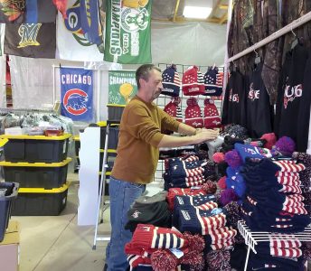 The Marshfield Clinic-Dickinson Continental Cup tournament opens today with official trial rounds of jumping at 1 p.m. Another trial round is set for 10 a.m. Saturday, followed by two competitions slated to start at 11 a.m. and 1:30 p.m. Sunday’s schedule includes a trial round at 11 a.m., followed by a competition at 1 p.m. A button is required for entry to the event. Prices at the gate are $35 for adults, $30 for ages 11 to 17 and no charge for ages 10 and younger. A host of people were at the Pine Mountain venue Thursday getting set up for the crowds to come. Doug Roberts and Richard Roberts of 1st Down Tree Service delivered firewood to the Springer Landing shack to help keep spectators warm during the competition. Steve Conery of Conery Sports in Quinnesec sets up Pine Mountain Ski Tournament items, 906 hats and other merchandise he’ll offer for sale in the Popple Palace building at Pine Mountain.