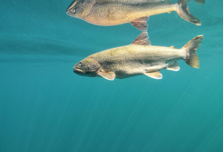Based on this information, the scientists returned to Isle Royale in 2018, where they captured both spring- and fall-spawning siscowets, fitting fish with acoustic telemetry — or tracking — tags, and simultaneously the team deployed an array of about 90 acoustic receivers. This array recorded the positions of the fish and was the deepest-ever deployment of acoustic technology in the Great Lakes, at depths over 325 feet. The idea was that the tagged spawners would reveal to the researchers where the tagged fish congregated to lay their eggs.
