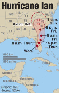 - Map projecting Hurricane Ian’s path as it makes landfall.