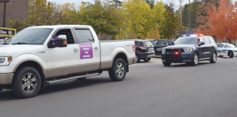 - A “Break the Silence” event took place Tuesday in Iron Mountain, with squad cars, fire engines, ambulances and citizens driving from the Dickinson County Sheriff’s Office to First Presbyterian Church in Kingsford with sirens blaring and horns sounding. The annual event during Domestic Violence Awareness Month aims to shine a light on domestic violence and encourage people to speak up if they face such treatment or know of someone who is being abused. (Marguerite Lanthier/Daily News photo)