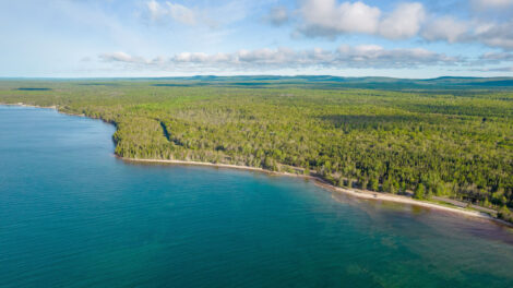 THE LITTLE BETSY shoreline, one of three large land parcels The Nature Conservancy has purchased in the Keweenaw Peninsula. The conservancy is working to acquire a fourth parcel to protect more than 31,000 acres in Keeweenaw County. (Quincy Aerial Photography)