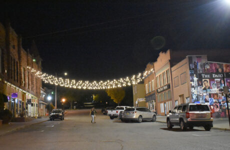 - The Iron Mountain Downtown Development Authority won a $500 Neighborhood Bridge Builders grant from the Michigan Municipal League Foundation for its Public Art Sky Installation project. This fall, bistro lights were installed on Ludington Street as well as the alleyway between the First National Bank & Trust and the Sandstone Studios building. Shown are the finished lights in the 200 block of Ludington. (Betsy Bloom/Daily News photo)