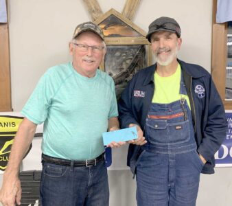 Purchasing the first five raffle tickets from Kiwanis Ski Club President Nick Blagec, left, is Wayne Malone of Norway. The 2023 Marshfield Clinic Pine Mountain Continental Cup is scheduled for March 3-5 with three fantastic competitions. This Kiwanis Ski Club raffle is limited to only 1,000 tickets. Tickets are $5 each or five for $20. First and second prizes are huge wooden replicas of the old ski jump, shown above; third is $250; fourth is $150; and fifth is $50. Tickets can be bought from any club members or by contacting the Kiwanis Ski Club Facebook page; a KSC member will hand deliver locally. This raffle is sponsored by the U.P. Veterans Memorial S.A.L. 50. License No. R66778. Drawing takes place March 9, and the winners need not be present.