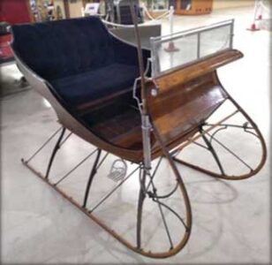 - EDIE GAZZA donated this one-horse open sleigh that had been restored by her late husband, Roland Gazza. It will be featured with other horse-drawn vehicles in the livery stable area of the new museum. (Terri Castelaz/Daily News photo)