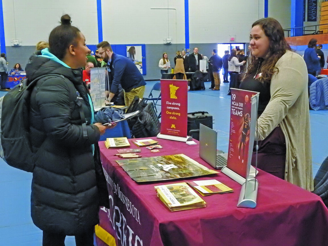 Libby Plath, a second-year psychology major from Minneapolis, stopped to talk with a representative from University of Minnesota – Morris. She’d also had good talks with Northland College and the Milwaukee School of Engineering.