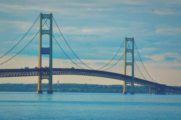 ENBRIDGE'S LINE 5 runs for hundreds of miles throughout both of Michigan’s peninsulas, but opponents’ major source of concern is the 4 1/2 miles of pipeline that cross underwater the Straits of Mackinac. (Susan J. Demas/Michigan Advance photo)