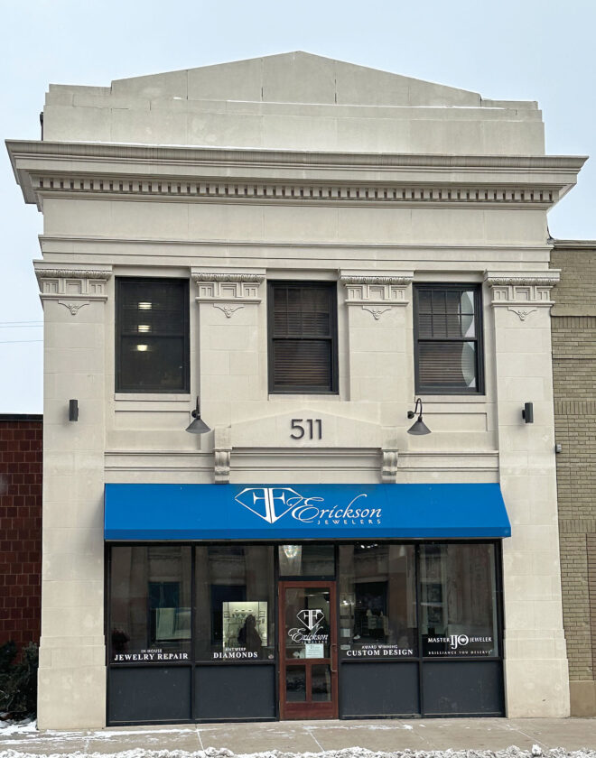 - ERICKSON JEWELERS AT 511 S. Stephenson Ave. in Iron Mountain was awarded $10,000 through the Downtown Facade Improvement Grant program in 2017 for work on the front facade of the historic downtown building. The work included replacing front windows and doors, and repairing original architectural details. A new awning, lights, signage and exterior features were added to the facade as well. (Terri Castelaz/Daily News photo)