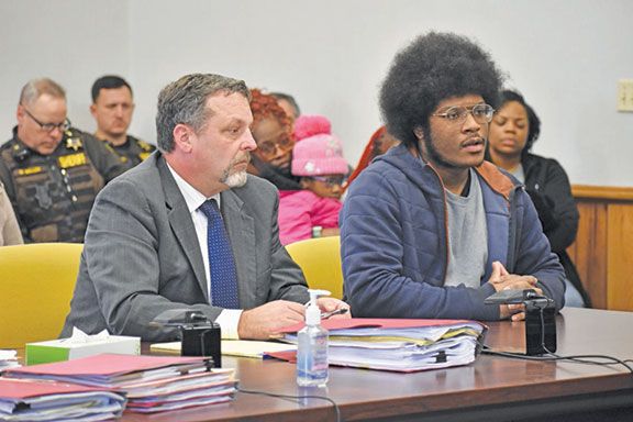 Dawaun Johnson, seen with his attorney Keith DeForge, pleaded guilty to operating under the influence - causing death during a plea hearing Tuesday in Baraga County Circuit Court. (Garrett Neese/Daily Mining Gazette)