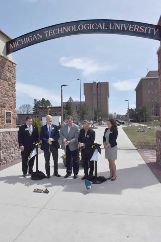 Friday’s ribbon-cutting was followed by one at the new Alumni Gateway Arch on the west end of campus. Mike Trewhella, a Negaunee native and 1978 Tech graduate, provided the donation towards the new landmark.