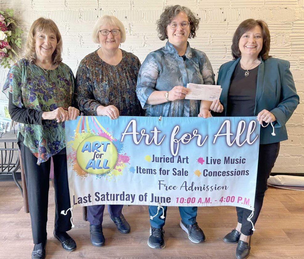 The Dickinson Area Community Foundation, along with affiliates Norway Area Community Foundation and Crystal Falls Area Community Foundation, awarded a $500 Community Impact Grant to Art for All. This grant, partially funded with a matching grant from the Pasahow Family Fund, will be used to purchase reuseable banners and signs. This will be the 57th annual event will be at City Park in Iron Mountain planned from 10 a.m. to 4 p.m. on Saturday. There will be live music from 11 a.m. to 3 p.m. and around 30 artists in attendance. From left are Lana Franz, co-chair; Joy Nasi, co-chair, Ricki Steigerwald, committee member accepting the check from Tamara Juul, executive director of DACF. The mission of the Community Foundation is to enhance and strengthen local communities now and for generations to come. If you would like information on available grant funding, for the current needs in the community, contact Juul at 906-774-3131, or go to the website at www.dickinsonareacf.org.