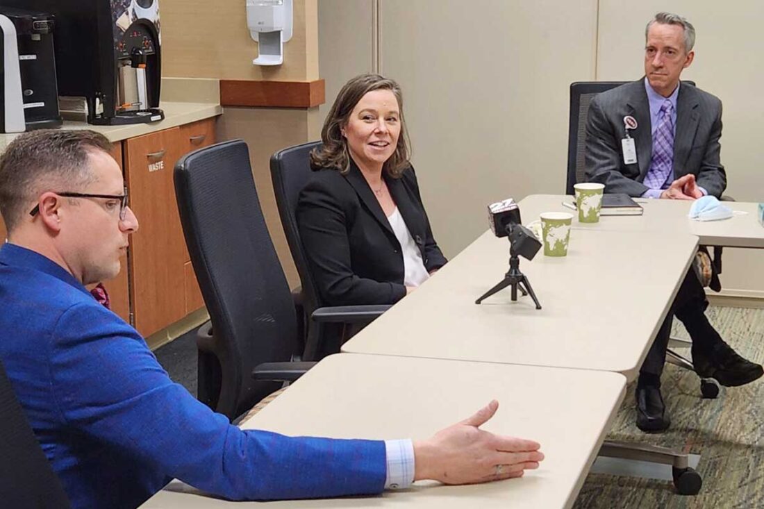 Lt. Gov. Sara Rodriguez said that with a new Legislature coming into office in January, elected under Wisconsin’s new voting maps, she believes legislators will show more flexibility in considering whether Wisconsin should be the last state to accept the federal Medicaid expansion. Dr. Nathan Grunewald, a urologist who grew up in Sauk County and returned to practice at Sauk Prairie Health Care, speaks with Rodriguez about concerns relating to recruiting and keeping health care workers in January. (Erik Gunn/Wisconsin Examiner)