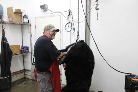 The start of bear season this month means the busy time of the year has arrived for Sommers Sausage Shop, so he brings in two more employees in addition to the two who work full-time. With the weather still warm, a bear can spoil overnight, so Sommers often works late into the evening.