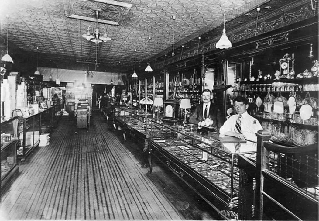 - This 1910-1915 photo shows the interior of the former Rahm & Will Jewelry Store in Iron Mountain. Co-owner Gust Rahm is shown at the counter at left. (Photo provided by the Menominee Range Historical Museum)