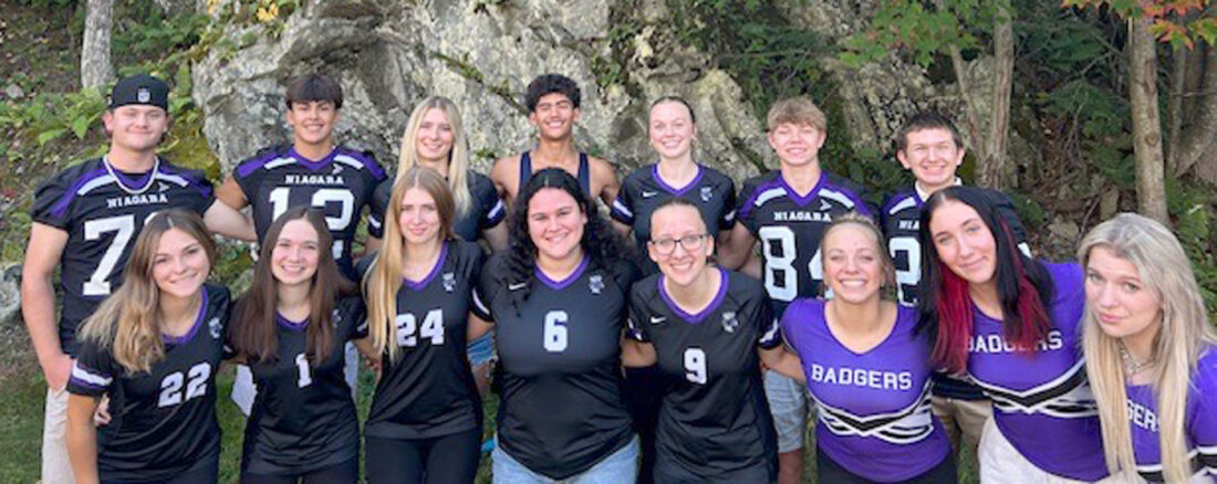 Members of the Niagara High School 2025 Homecoming Court — from left, in front are Annalee White, Elesia Sweig, Brooke Bruemmer, Sienna LaRock, Lexi Champagne, Lydia Beard, Emma Kowalkowski and Sophia Granquist; in back are Noah Wheeler, Brayden Bartels, Alivia Kleikamp, Christian Anderson, Alyssa Hedmark, Kaden Courts and JJ Wallace. (Submitted photo)