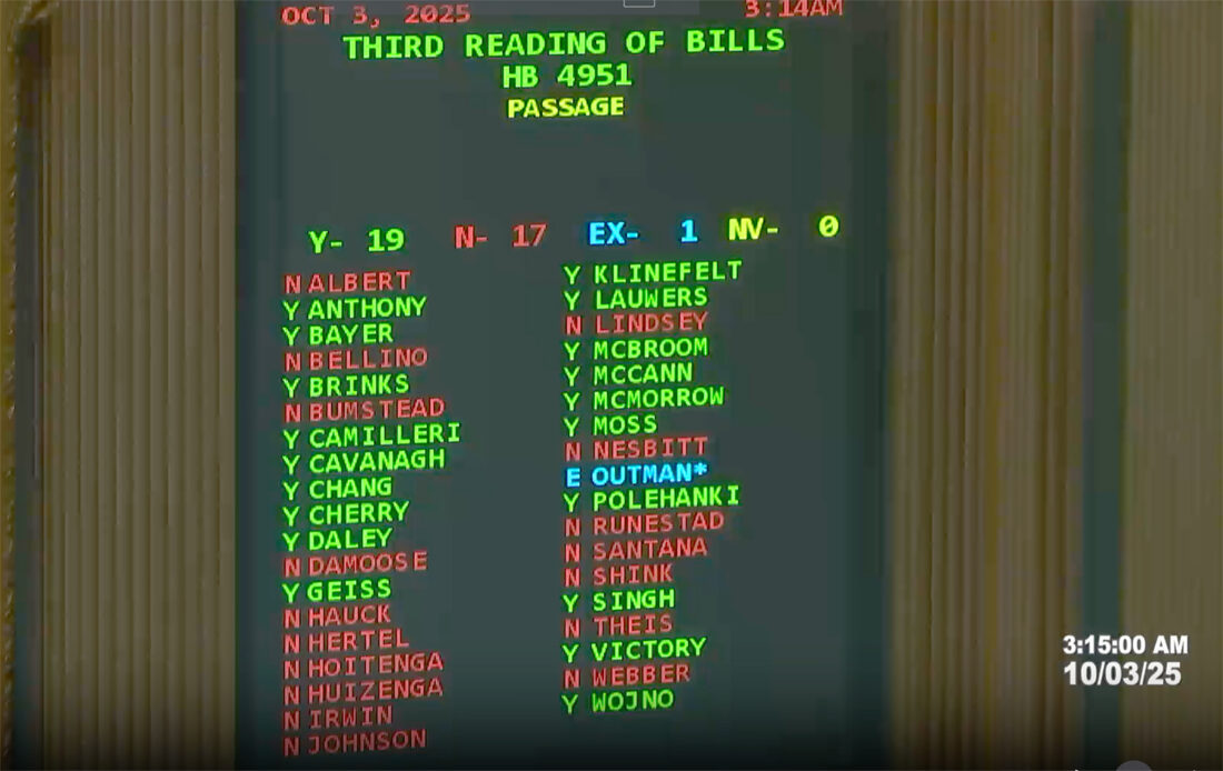 Brinks and these senators voted in favor of the bill: Sarah Anthony, D-Lansing; Rosemary Bayer, D-West Bloomfield; Darrin Camilleri, D-Trenton; Mary Cavanagh, D-Redford Township; Stephanie Chang, D-Detroit; John Cherry, D-Flint; Kevin Daley, R-Lum; Erika Geiss, D-Taylor; Veronica Klinefelt, D-Eastpointe; Dan Lauwers, R-Brockway; Ed McBroom, R-Waucedah Township; Sean McCann, D-Kalamazoo; Mallory McMorrow, D-Royal Oak; Jeremy Moss, D-Bloomfield Township; Dayna Polehanki, D-Livonia; Sam Singh, D-East Lansing; Roger Victory, R-Georgetown Township; and Paul Wojno, D-Warren.