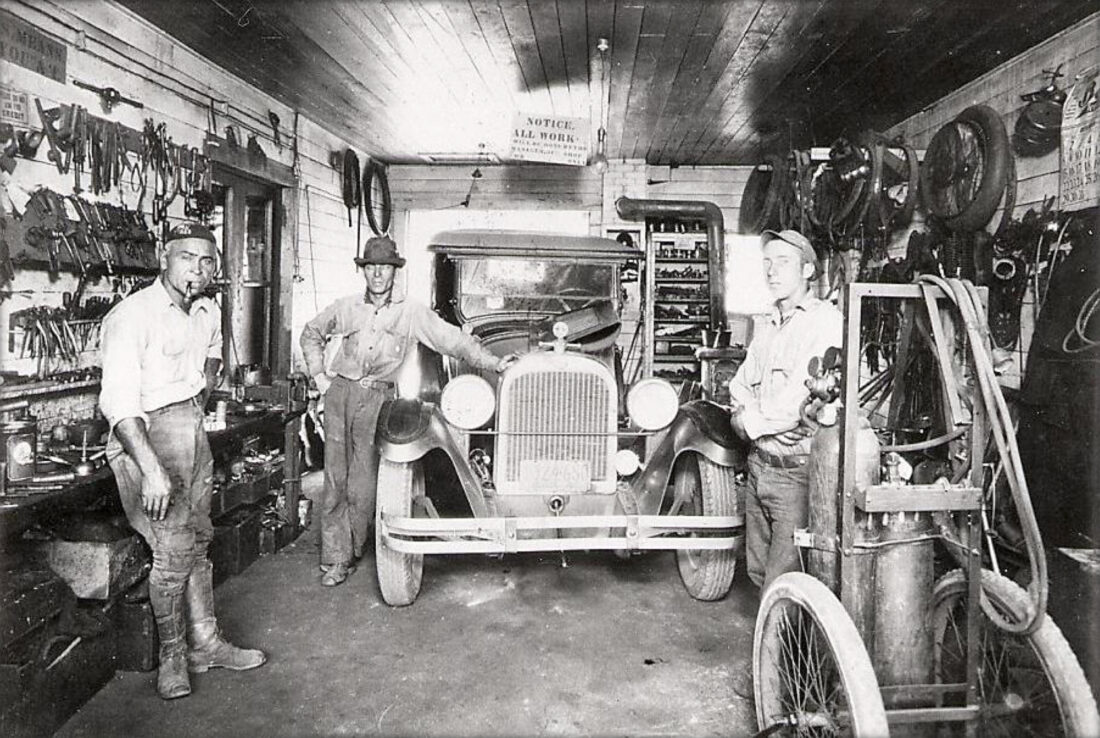 Operated by Williams Rhodes, it sold Indian brand motorcycles and repaired cycles, bicycles and later automobiles. In the first photo from 1927 are Rhodes, left, Pat Trepanier, center, and James Martin, right.
